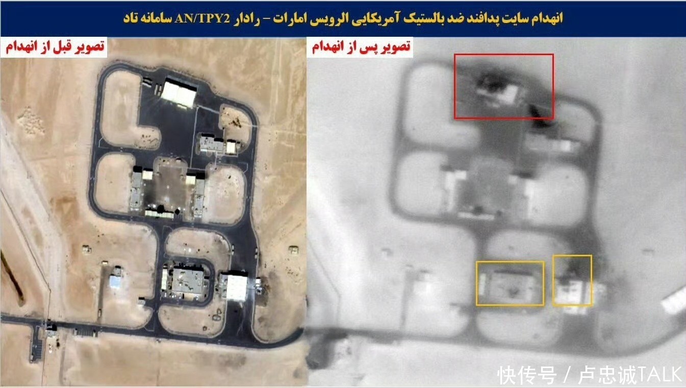 3月2日,摧毁了位于阿联酋美军基地里的萨德雷达系统,也就是TPY-2雷达。3月3日,又摧毁了另一套萨德系统,同时还击中了卡塔尔一个价值11亿美元的早期预警雷达。最关键的是,有卫星图可以佐证,确实有导弹击中了驻阿联酋的美军萨德TPY-2雷达阵地。