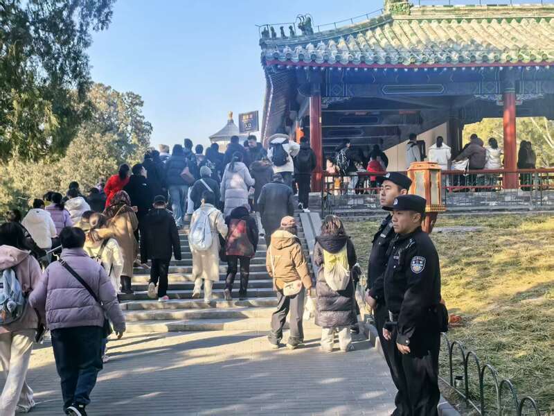 据了解,春节假期期间,北京警方围绕重点公园景区,按照“一点一策一方案”的标准,每日部署超4000名安保力量,全力做好旅游秩序维护工作。在10时至11时、15时至17时等入园、出园高峰时段,推动开启潮汐式门区通道,适时采取单向通行,严防拥挤踩踏。特别是会同文化执法、交通执法、城管等部门启动“1+3+5+N”联勤指挥部,协同联动,形成合力,动态整治非法一日游、皇城游、黑导游、无照游商等涉旅乱象,有力营造良好治安环境。