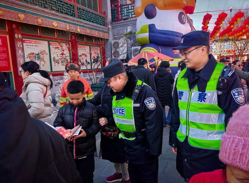 在深入融合了京剧、双簧、传统手工艺等非遗技艺的2026年北京厂甸庙会上,北京市公安局西城分局提前谋划、周密部署、全警动员,聚焦风险防控、秩序维护、应急处置、服务群众等关键环节,以最高标准、最严要求、最实举措,全力以赴做好各项安保工作,为市民群众欢度春节筑牢坚实安全屏障。