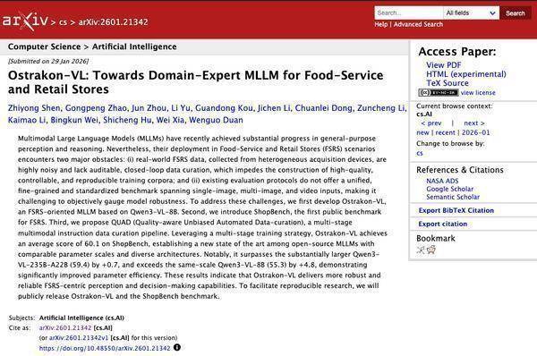 “白泽”的论文已公开发表2026年被预期为AI场景应用的全面爆发之年,随着《网络餐饮服务经营者落实食品安全主体责任监督管理规定》的出台,业内越来越关注AI可以如何助力网络餐饮行业提升数字化治理水平。作为首个面向餐饮服务与零售门店场景的多模态大语言模型,“白泽”已经深入参与到了淘宝闪购的日常平台治理中,在商家入驻审核、日常巡检及风险预警等核心场景中发挥关键作用。淘宝闪购会继续加大“白泽”的应用广度和深度在线配资平台网址,重点攻坚困扰行业的食品安全顽疾。比如在明厨亮灶智能巡检方面,“白泽”可以24小时分析后厨直播视频流,自动识别墙面、台面清洁度、垃圾桶是否外溢、生熟食材是否分离、厨师是否佩戴工作帽等食品安全管理细节。白泽识别出违规行为后,系统可以即时生成预警并推送至风控治理团队,实现从“人工抽查”到“全时监控”的转变。