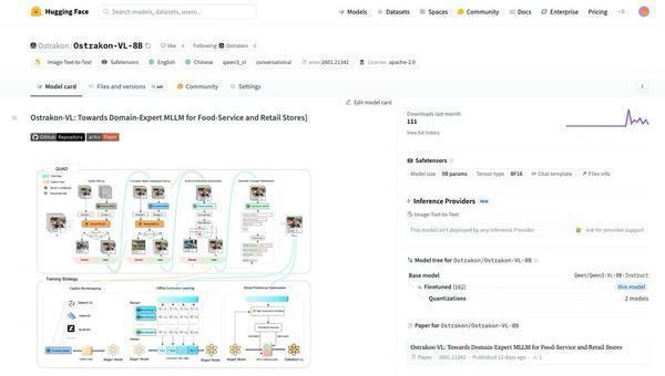 “白泽”已在Hugging Face上开源通过开源开放,连锁品牌总部可利用模型管理分店合规情况;各大外卖平台也可借鉴淘宝闪购技术方案提升自身治理能力。“白泽”的问世伴随着AI大模型从通用能力向垂直场景深度赋能的转变,为构建包含平台、商家、社会的食品安全共治格局,提供了新的技术淘宝闪购技术相关负责人表示,平台长期以来持续加大AI研发投入,以技术创新守护“舌尖上的安全”,让消费者放心消费,让合规商家获得更有利的经营环境。举报/反馈