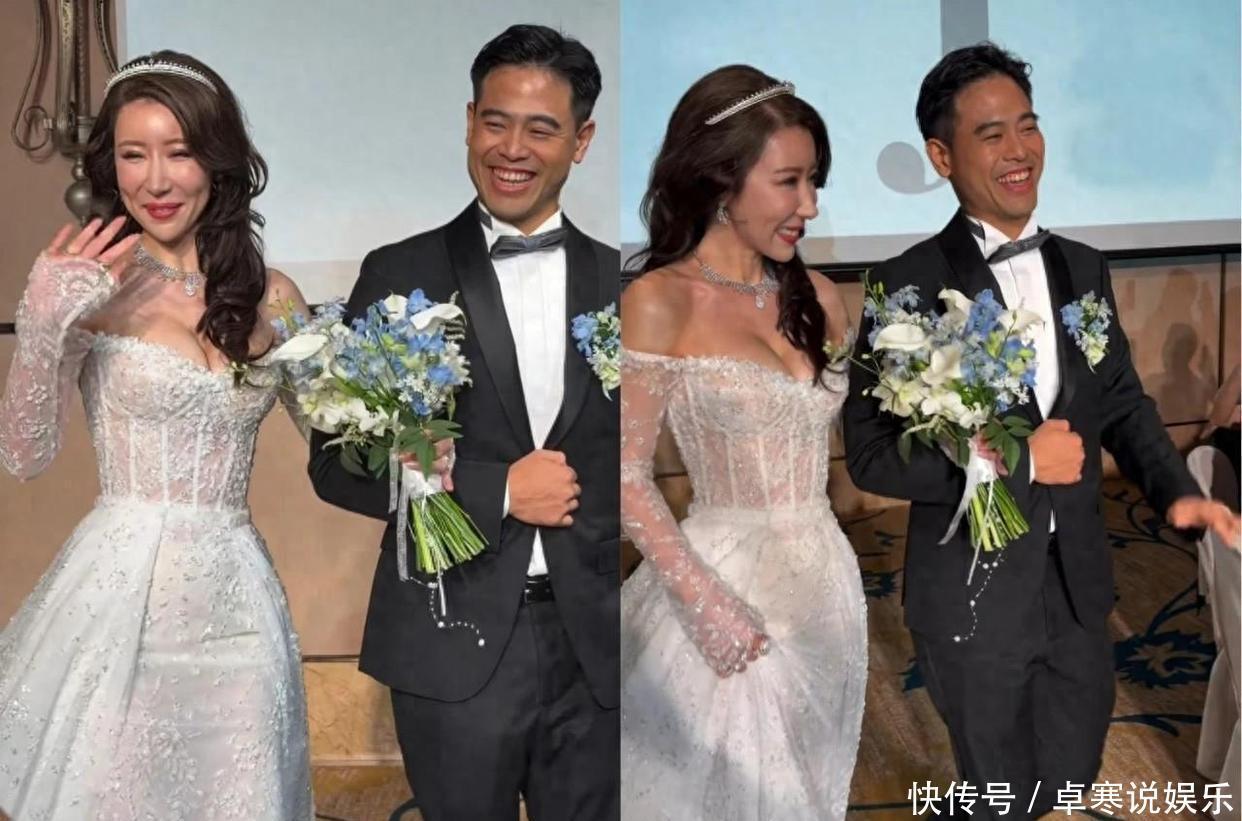 去年520公布婚讯的她,最近在中环一家五星级酒店举办了婚礼,有14桌宾客。虽然低调,规模也不算特别大,但整个气氛非常热闹喜庆。最关键的是,作为新娘的她——走进场时穿着一件一字肩拖尾白色婚纱,加上蕾丝透视的细节,完美展示了好身材,既高贵又性感,绝对吸引了不少目光。