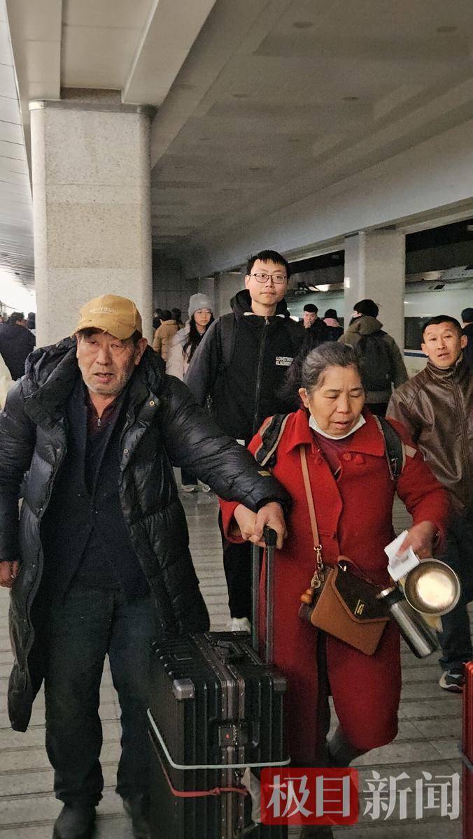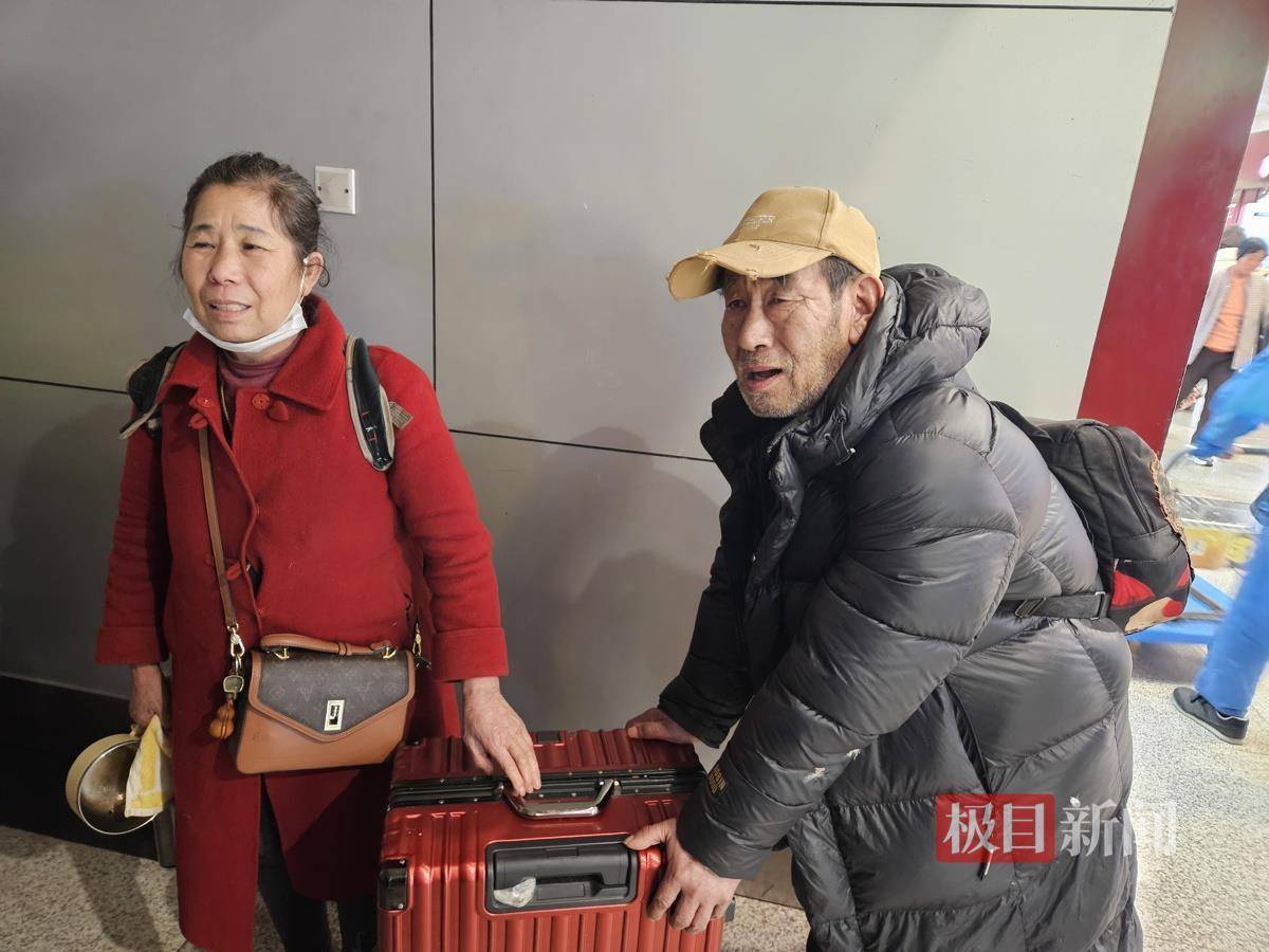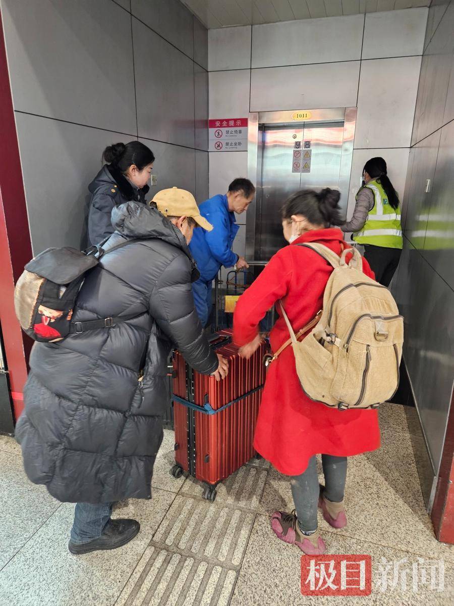 极目新闻记者注意到,在提着行李前往车厢乘车时,李阿姨的老伴行走不便,需要牵着她。车站工作人员看到后主动帮忙提行李,并乘坐直梯前往乘车站台,帮助两名老人上车。