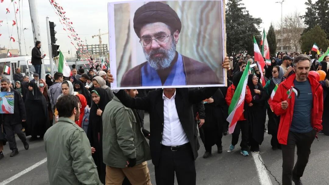 当地时间3月9日,伊朗民众集会支持新任最高领袖穆杰塔巴·哈梅内伊